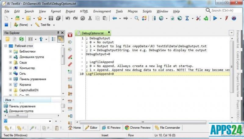 RJ TextEd bietet dem Entwickler eine Vorschau von ASP-, HTML- und auch PHP-Dateien. Es enthält nützliche Zusatzfunktionen wie Unterstützung für lokale und entfernte Ordnersynchronisation, Makro-Behandlung, Befehlszeilenargumente, Drag-and-Drop-Mechanismus, MRU, Hotkey-Konfiguration und Kompatibilität mit anderen Anwendungen (z. B. UltraEdit und Mozilla Firefox).